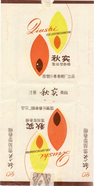 上世紀80年代,國營長春卷煙廠出品“秋實”卷煙,其煙標設計簡潔,主副版圖案均為一橙一黃兩粒飽滿的谷粒,象征著秋天的收獲?! ?/p>